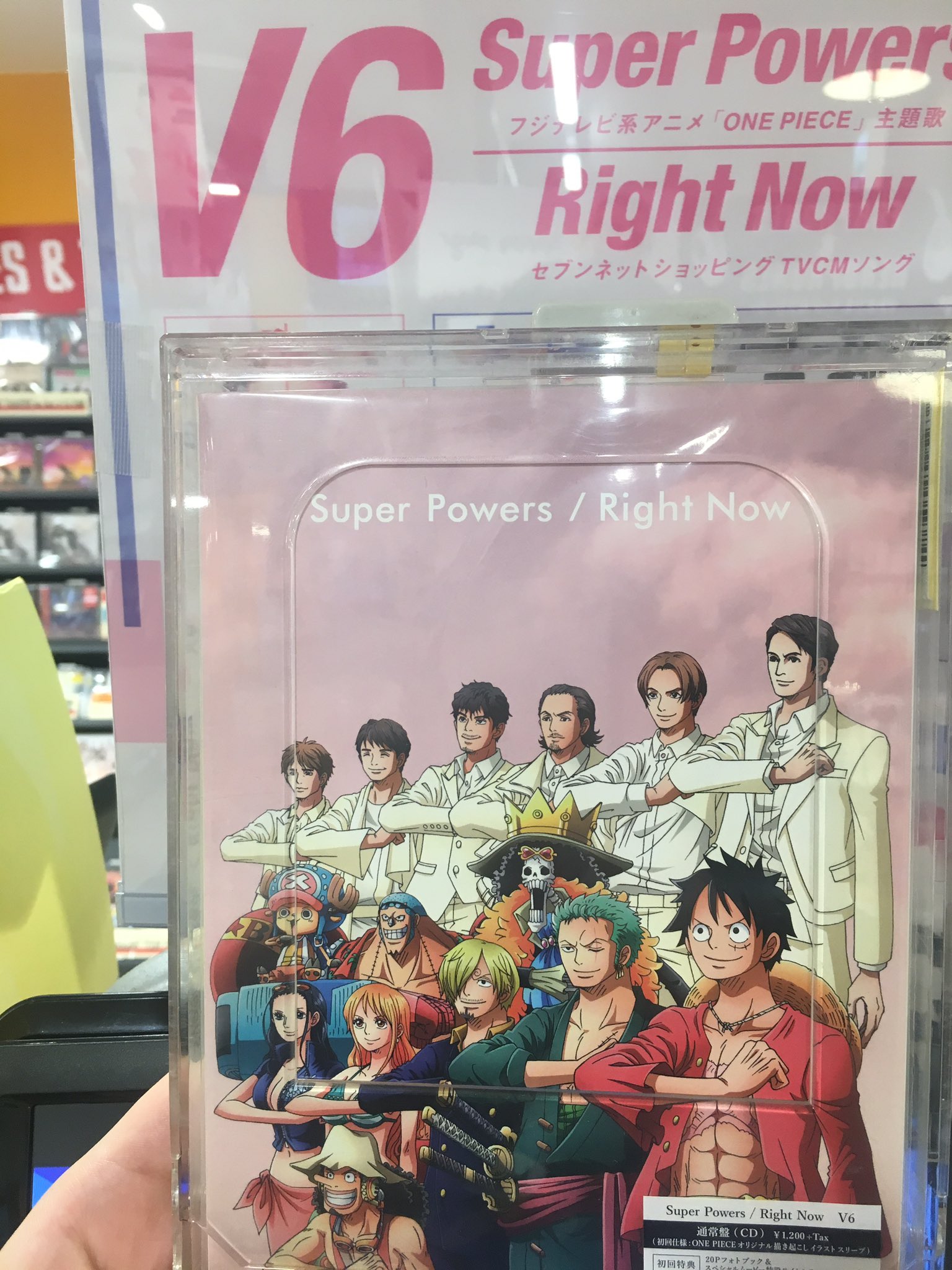 タワーレコード藤沢オーパ店 V6 記念すべき50枚目シングル アニメ One Piece 主題歌にもなっている Super Powers と清水翔太さんが作詞作曲した Right Now ダブルaサイドシングル 初回仕様限定 通常盤はなんとv6のメンバーと麦わらの